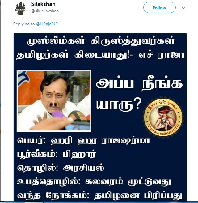 காமெடி டைம்: பெயர் – ஹெச் ராஜா; உபதொழில் – கலவரமூட்டுவது!